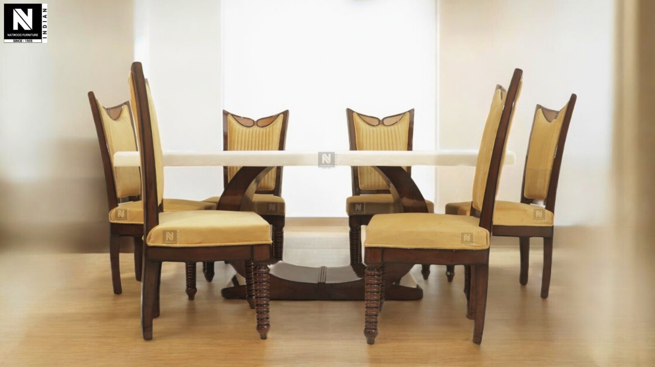 NF CHAND 6STR DINING TABLE WITH 66″×36″ ONEX BOX WHITE MARBLE WITH 6PCS RING PAN CHAIR