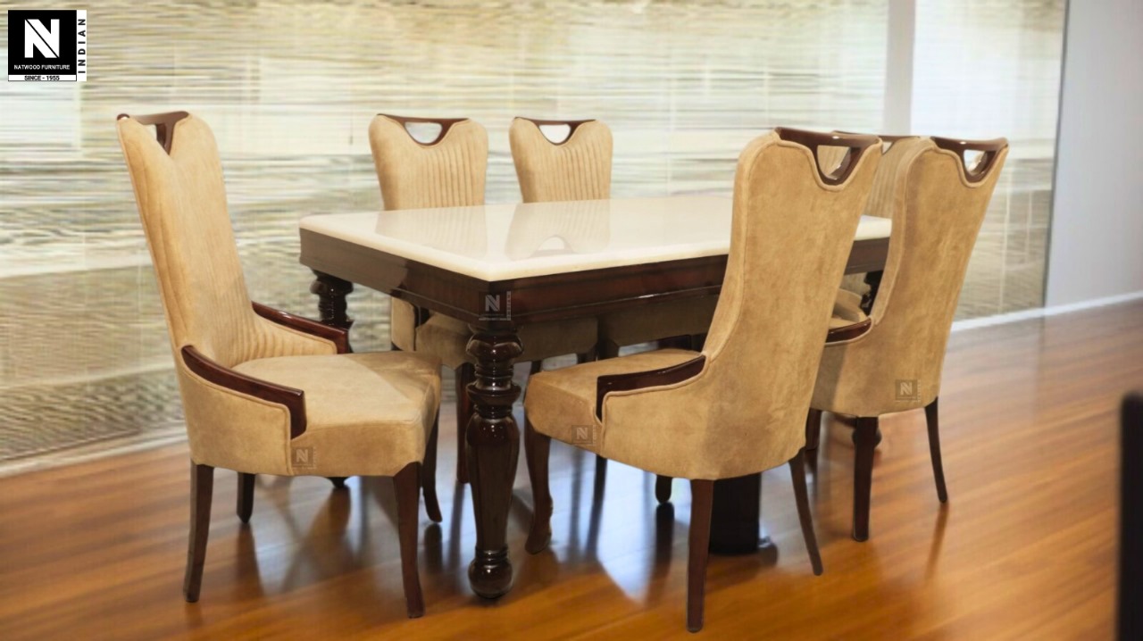 SI BUBBLE 6 SEATER DINING TABLE WITH SI D CHAIR WITH ONEX OFF WHITE MARBEL